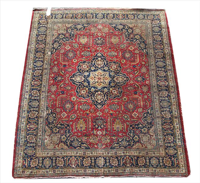 Tapete Persa, 337 x 260cm = 8,7m2 (no estado / precisa refazer franja e cordão / uma borda com danificado / rape)