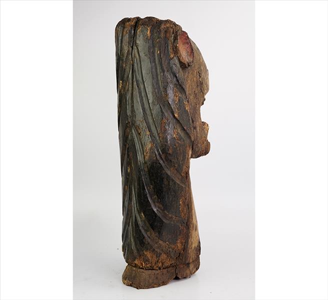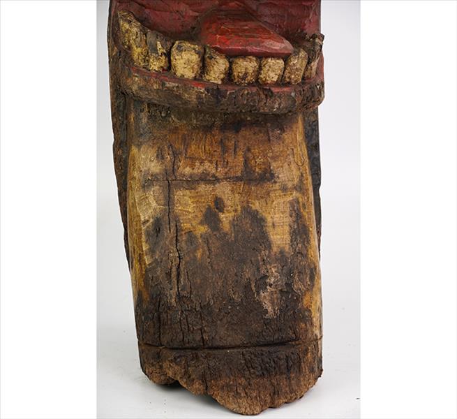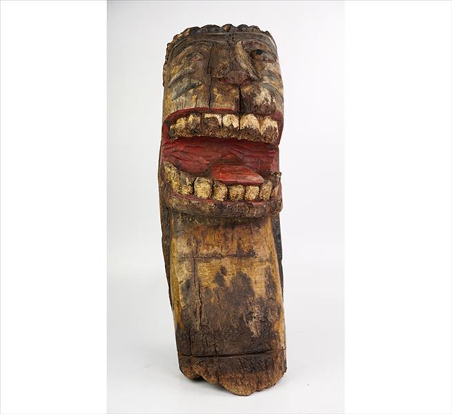 Carranca regional de madeira entalhada e policromada, com sinais de uso real em navegação. Alt. 70 x 25 x 26cm. Brasil, séc. XIX/XX