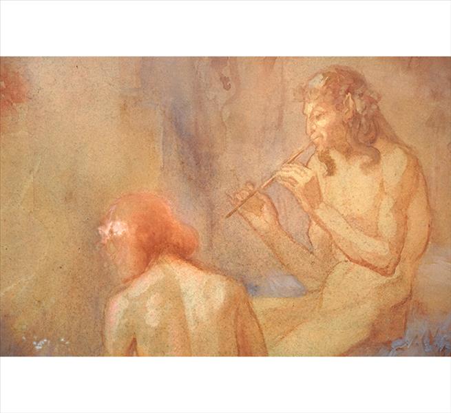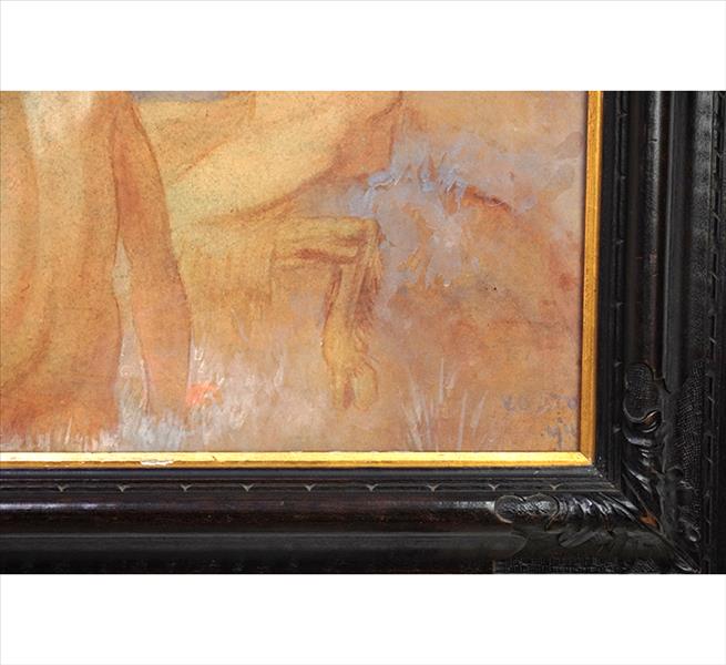 Quadro com assinatura de artista ilegível, Fauno e Bacante, Sanguínea e Aquarela sobre Papel, ACID, 43 x 53cm (m.i). Datado 1911