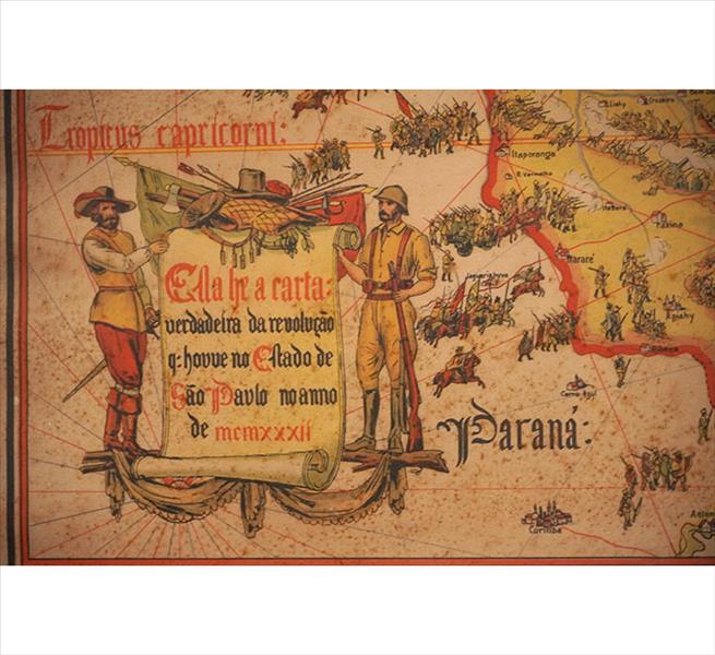 Mapa intitulado Verdadeira Revolução Q Houve no Estado de São Paulo no Anno de MCMXXXII. 47 x 67cm (m.i). Brasil, séc. XX