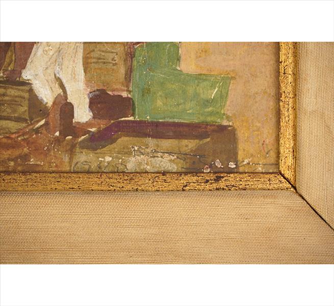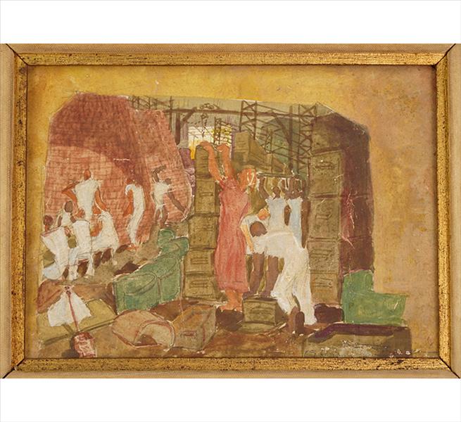 EUGENIO PROENÇA SIGAUD, Trabalhadores, Tempera sobre Papel, ACID, 15 x 21cm. (m.i). Datado 1940 (selo da Galeria Belas Artes no verso)