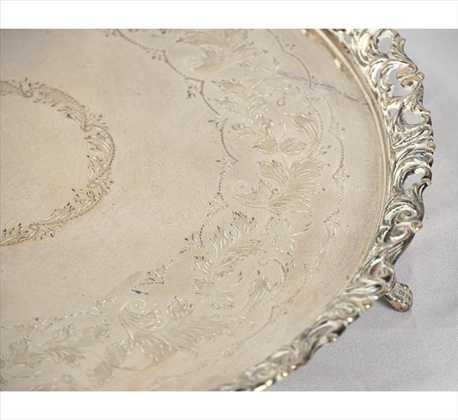 Salva de prata-de-lei, contraste teor 833, ornamentada com guirlandas cinzeladas, galeria fenestrada. Alt. 05 x 27cm. Brasil, séc. XX