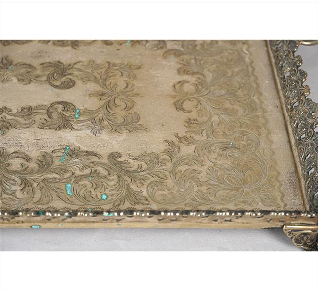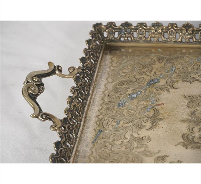 Travessa de prata-de-lei, contraste teor 833, ornamentada com guirlandas cinzeladas, galeria fenestrada. Alt. 08 x 41 x 24cm. Brasil, séc. XX