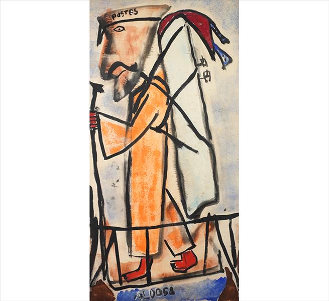 ALDO BONADEI, Composição com Figura, Técnica mista sobre Papel, ACIE, 48 x 24cm (m.i). Datado 1958