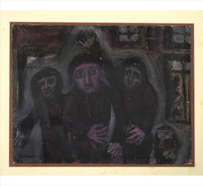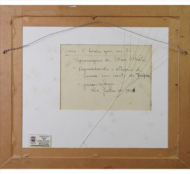 GERSON SOUZA, Aguardando o Retorno em Noite de Temporal - Série Cícero, Técnica Mista sobre Papel, ACIE e verso, 25 x 31cm (m.i). Datado e lozalizado, Rio de Janeiro, 1966 (verso com vidro da moldura quebrado)