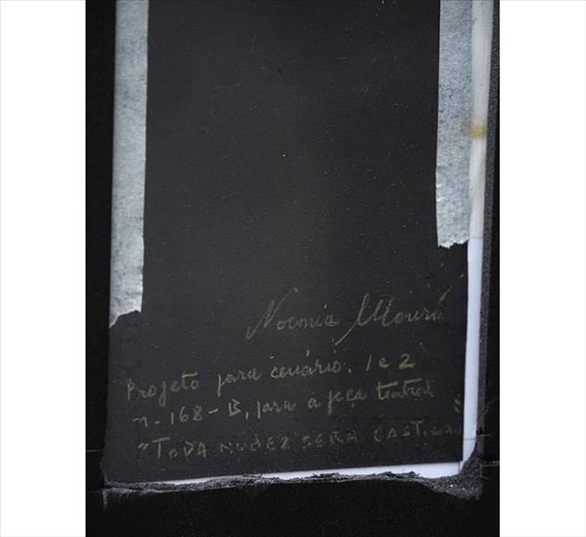 E. DI CAVALCANTI, Dípitco - Estudo para Peça de Teatro Toda Nudez Será Castigada, Guache sobre Papel, assinados, 45 x 10cm (cada) e 70 x 48cm (total c/ moldura). (verso com assinatura de Noemia Mourão indicando o estudo da obra para a peça de teatro)