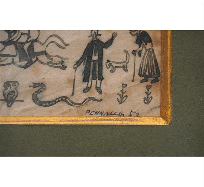 FULVIO PENNACCHI, Composição com Figuras, Técnica Mista sobre Papel, ACID, 10,5 x 13cm (m.i). Datado 1952