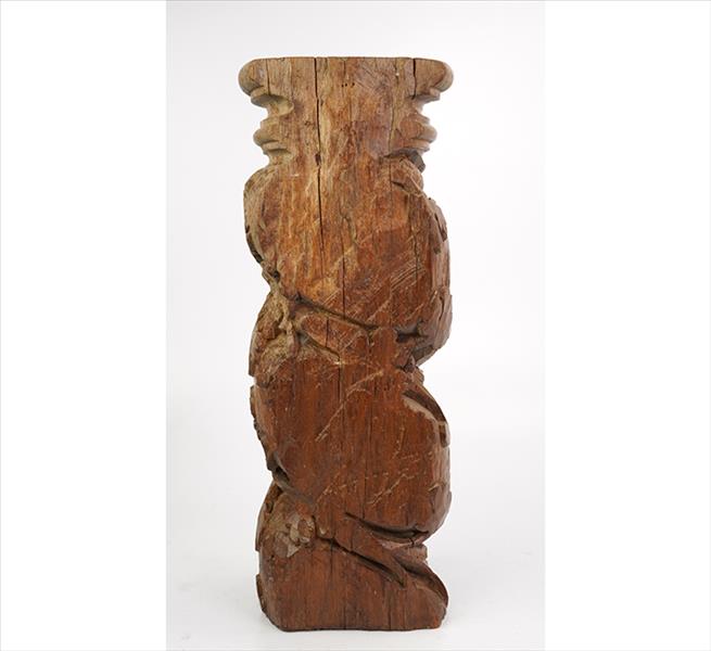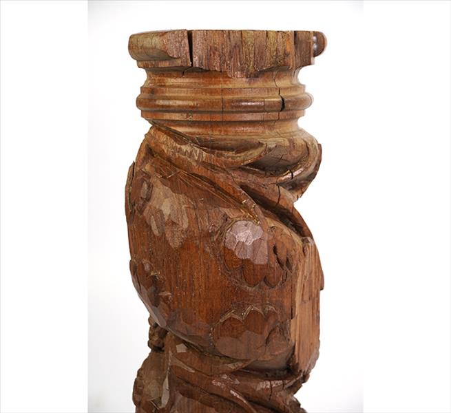 Fragmento de coluna salomônica de madeira entalhada, ornamentada com ramagens e flores. Alt. 45 x 17 x 13cm. Brasil, séc. XVIII