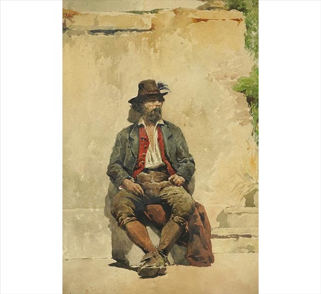 ONORATO CARLANDI (1848 - 1939), Figura Masculina, Aquarela sobre Cartão, ACIE, 44 x 30cm (m.i)