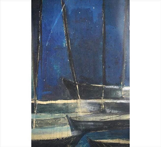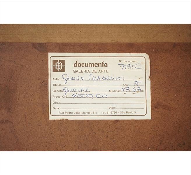 GISELA EICHBAUM (sem assinatura), Barcos, Guache sobre Papel, 67 x 47cm (m.i). Datado 1975 (com selo da Galeria Documenta no berso) (moldura c/ cupim)