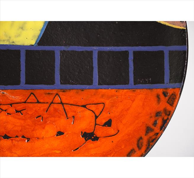 MEGUMI YUASA, Prato de cerâmica policromada e esmaltada, assinado. Diam. 30cm. Datado 1991