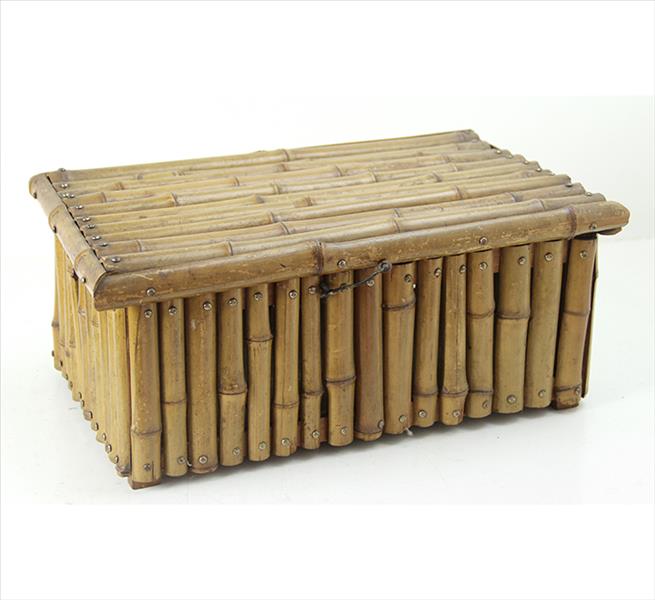 Caixa com estrutura feita de bambu, fecho com argola e pino de ferro. Alt. 19 x 45 x 27cm. Séc. XX
