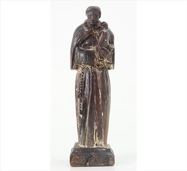SANTO ANTÔNIO, Imagem de madeira jacarandá entalhada, com resquício de patina. Alt. 26 x 07 x 06cm. Brasil, início séc. XX