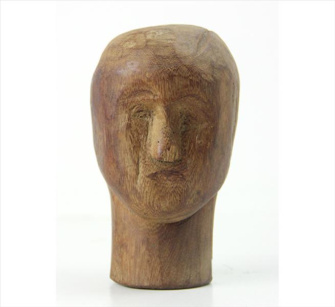 Ex-voto de madeira entalhada representando cabeça humana. Alt. 17 x 09 x 10cm. Brasil, início séc. XX