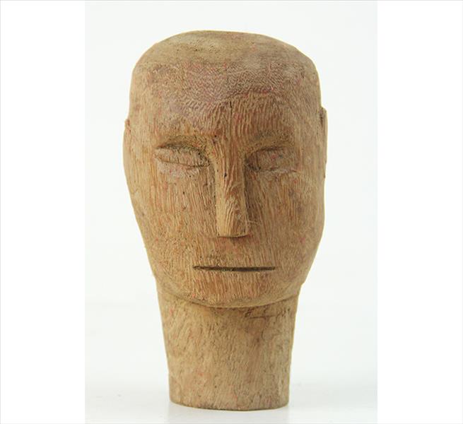Ex-voto de madeira entalhada representando cabeça humana. Alt. 17 x 08 x 10cm. Brasil, início séc. XX