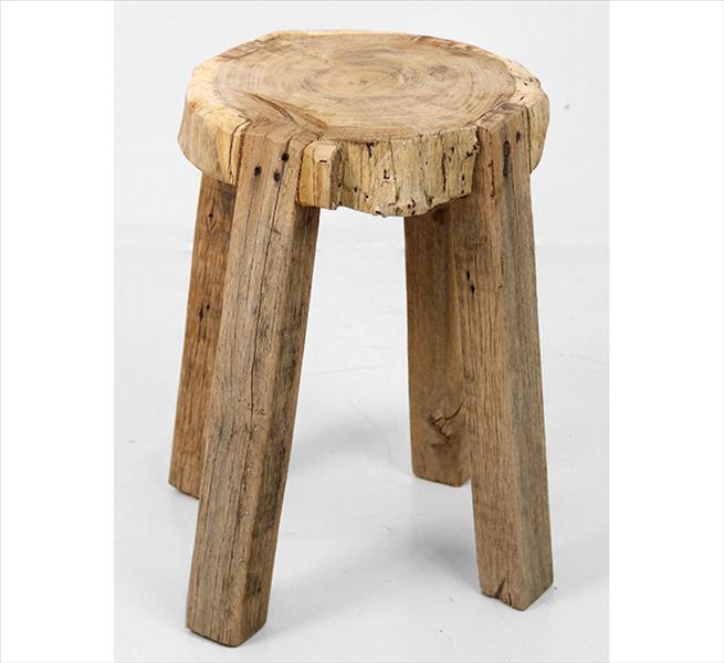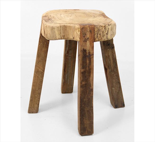 Banqueta rústica de madeira, pernas retas e assento em forma natural. Alt. 45 x 39 x 39cm. Brasil, séc. XX (uma lateral com desgaste)