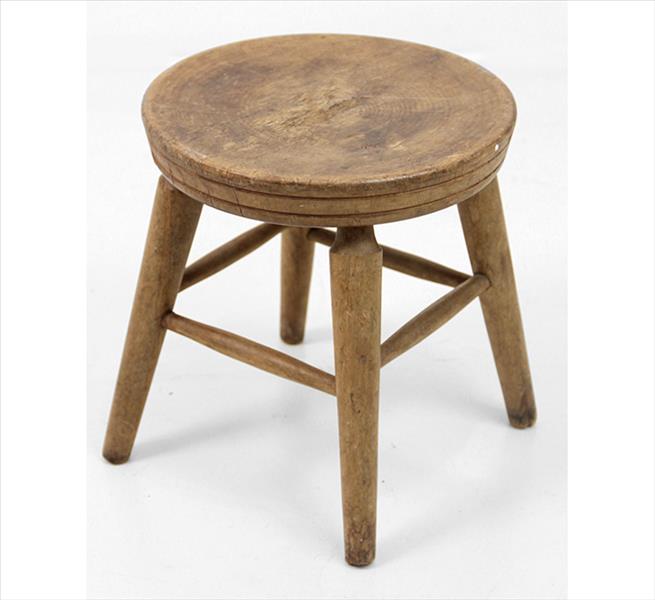 Banquinho rústico de madeira, pernas torneadas e assento circular. Alt. 30 x 34cm. Brasil, início séc. XX