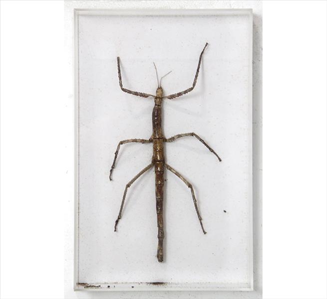 TAXIDERMIA, Bicho-pau empalhado, montado sobre box de acrílico. 35 x 22 x 07cm.