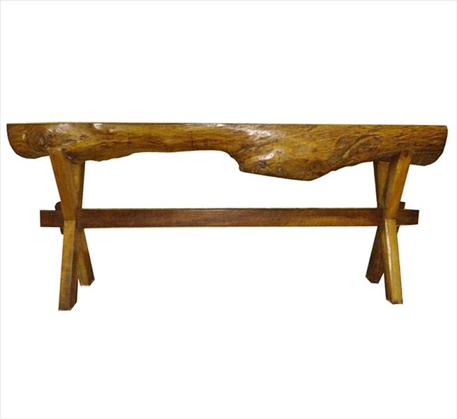 Aparador rústico de madeira, executado em grande tronco maciço, pernas retas com travas laterais. Alt. 80 x 185 x 40cm. Brasil, séc. XX