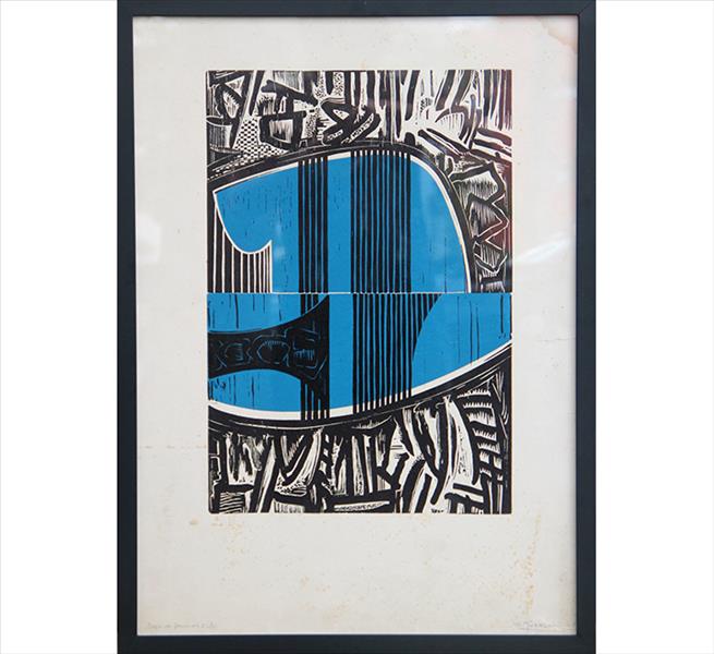 ODETO GUERSONI, Jogo de Formas I, Xilogravura, Tiragem 08/10, ACID, 49 x 34cm. (medidas parte colorida). Datado 1969 (com pequenas manchas / sinais de fungos)
