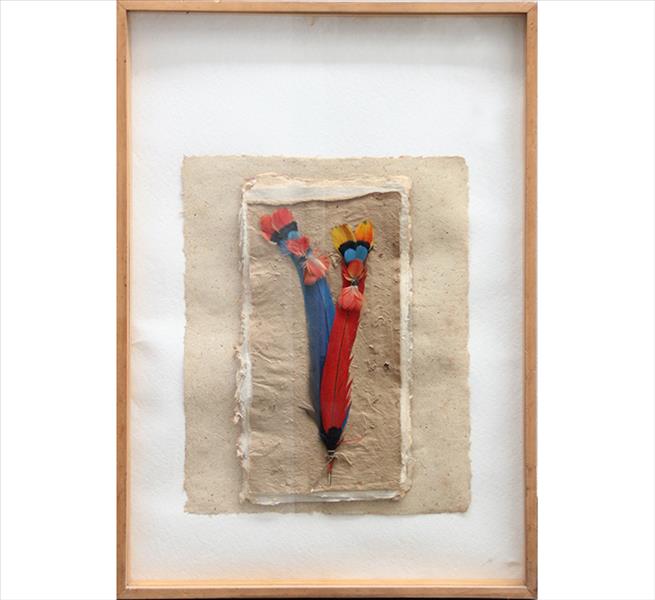 BENE FONTELES, Composição com Penas, Técnica Mista e Papel Reciclado, 45 x 35cm.