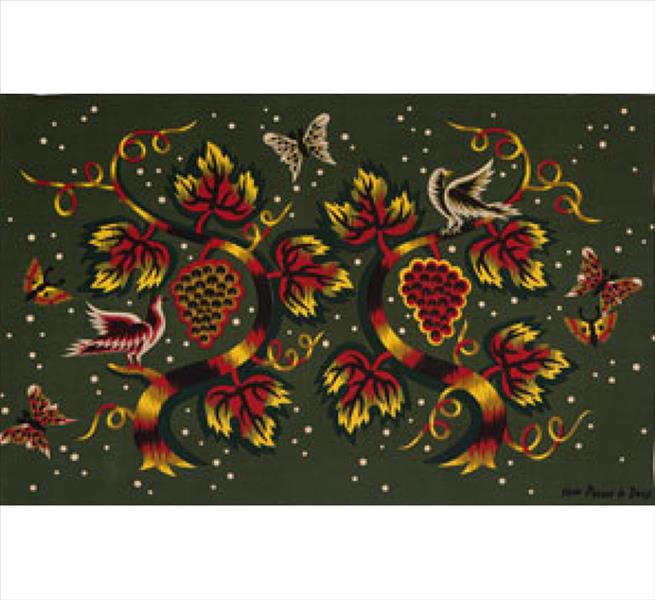 JEAN PICART LE DOUX, Tapeçaria ornamentada com parras, uvas e pássaros, sobre fundo na tonalidade verde, ACID, 113 x 166cm. França, década 60