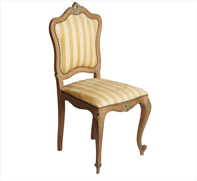 Cadeira com estrutura de madeira, estilo Luís XV, com resquício de patina, forração de tecido listrado. Alt. 100 x 46 x 45cm. (tecido manchado) Brasil início séc. XX.