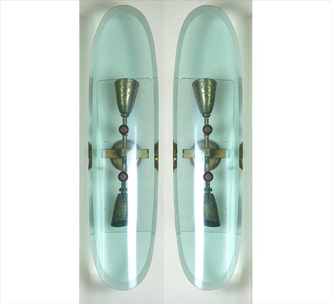 Par de luminárias de parede com estrutura de latão e placa de vidro. Alt. 50 x 13 x 12cm cada. Brasil, década 60 (latão oxidado)