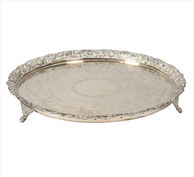 Salva de prata-de-lei, contraste teor 833, ornamentada com guirlandas cinzeladas, galeria fenestrada. Alt. 05 x 35cm. Brasil, séc. XX
