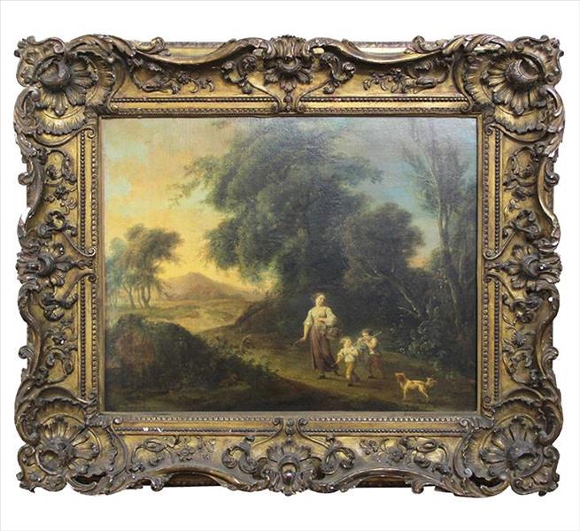 Escola de JEAN-HONORÉ FRAGONARD, Paisagem com Mulher e Crianças, OST, 55 x 67 cm. França séc. XVIII