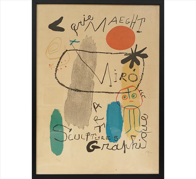 JOAN MIRO, Composição, Litogravura da exibição na Galeria Maeght, Tiragem 15/300, ACID, 75 x 55cm (m.i).