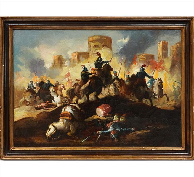 Quadro europeu sem assinatura do artista, Cena de Batalha, OST, 57 x 80cm (m.i). Europa, séc. XVIII/XIX