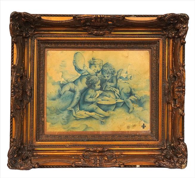 WILLIAM-ADOLPHE BOUGUEREAU (1825 - 1905), Querubins Músicos, Pastel sobre Papel, ACIE, 37 x 48cm (m.i). França, séc. XIX (verso com certificado de autenticidade emitido por Andre Pacitti em 1985) (papel com danificados)