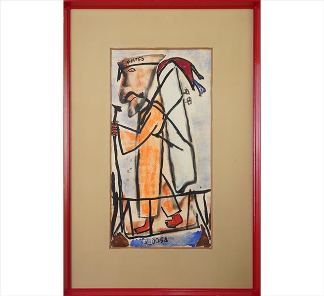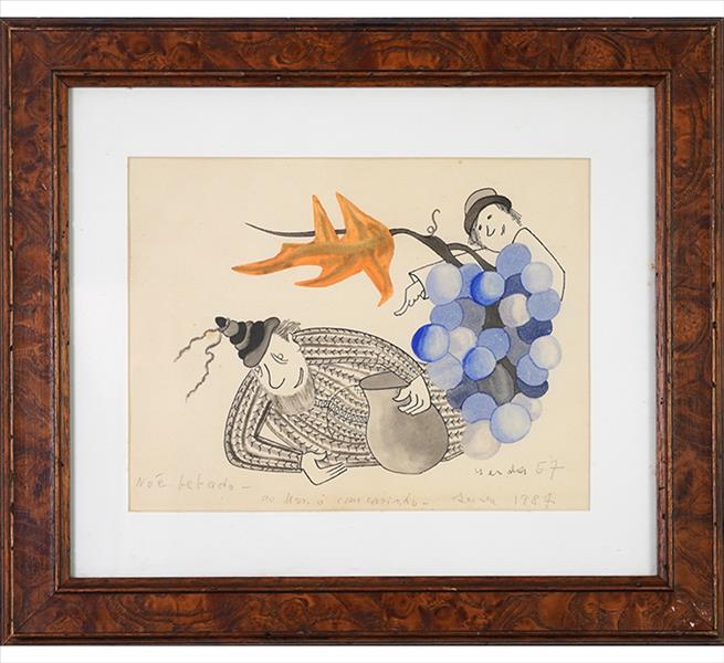 GERDA BRENTANI, Noé Bêbado, Técnica Mista sobre Papel, ACID, 23 x 30cm. (m.i). Datado 1957 (com dedicatória ao Mario - datada de 1987)