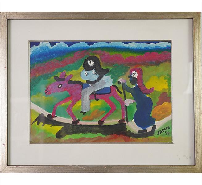 JOSE ANTONIO DA SILVA, Figuras e Cavalo, GSP, ACID, 26 x 38cm (m.i). Datado 1979. Verso com selo Renot leilões