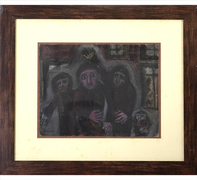 GERSON SOUZA, Aguardando o Retorno em Noite de Temporal - Série Cícero, Técnica Mista sobre Papel, ACIE e verso, 25 x 31cm (m.i). Datado e lozalizado, Rio de Janeiro, 1966 (verso com vidro da moldura quebrado)