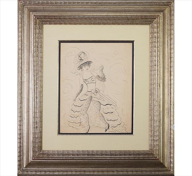 NOEMIA MOURÃO, Figura Feminina, Desenho à Bico-de-Pena, ACID, 34 x 27cm (m.i). (papel com vincos no canto superior direito)